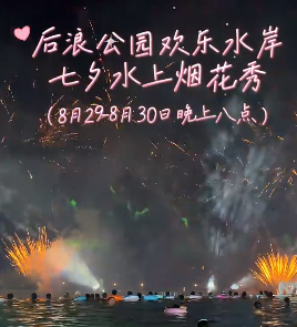 [視頻] 七夕來后浪公園歡樂水岸 看浪漫水上煙花秀啦!~七夕福利:連續(xù)3天轉(zhuǎn)發(fā)此視頻至朋友圈可免費(fèi)入園(8月31日之前有效)?燃放時間:2025年8月29-30日20:00 …