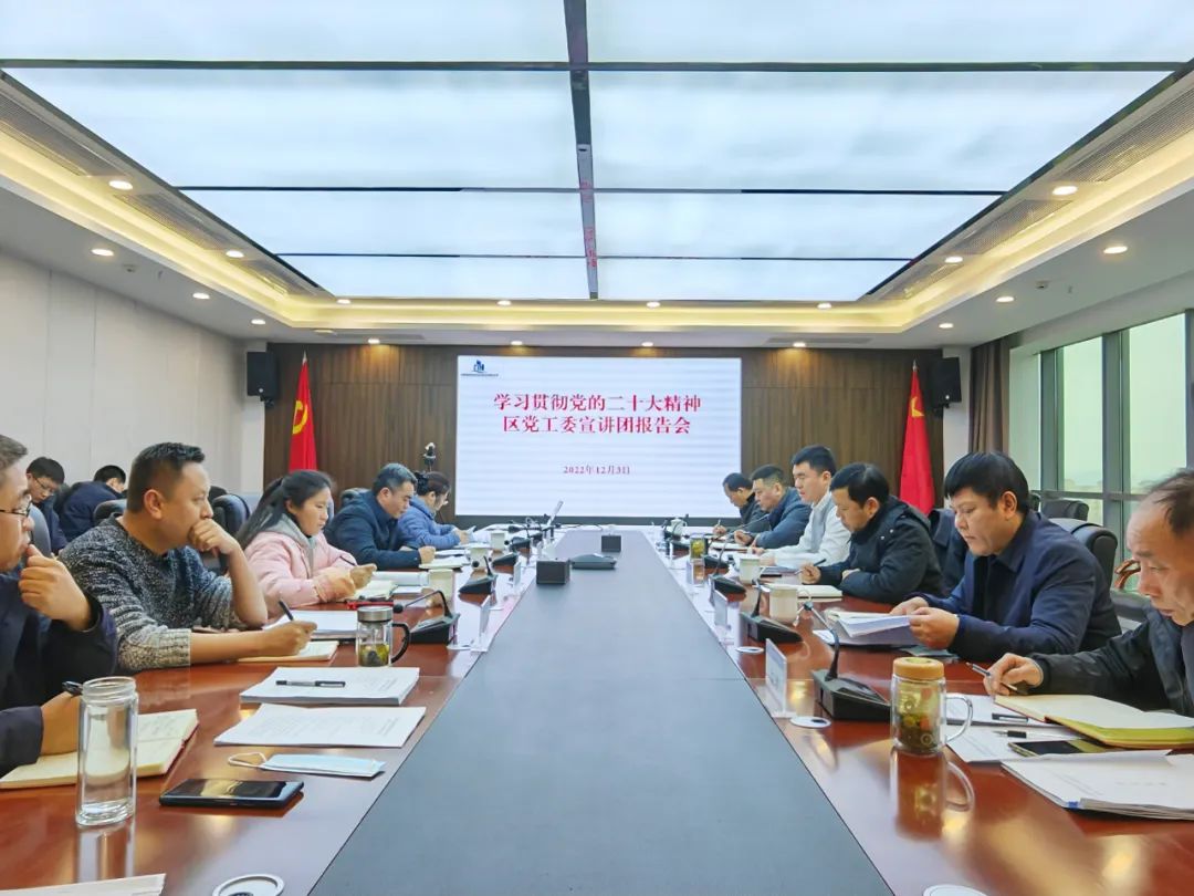 12月3日下午,區(qū)黨工委副書記、管委會(huì)主任潘宏軍來到南湖城市建設(shè)投資有限公司宣講黨的二十大精神。在宣講團(tuán)報(bào)告會(huì)上,潘宏軍圍繞黨的二十大的重要意義和主要成果、深入學(xué)習(xí)領(lǐng)會(huì)黨的二十大報(bào)告的核心要義等方面進(jìn)行了系統(tǒng)宣講和闡述…